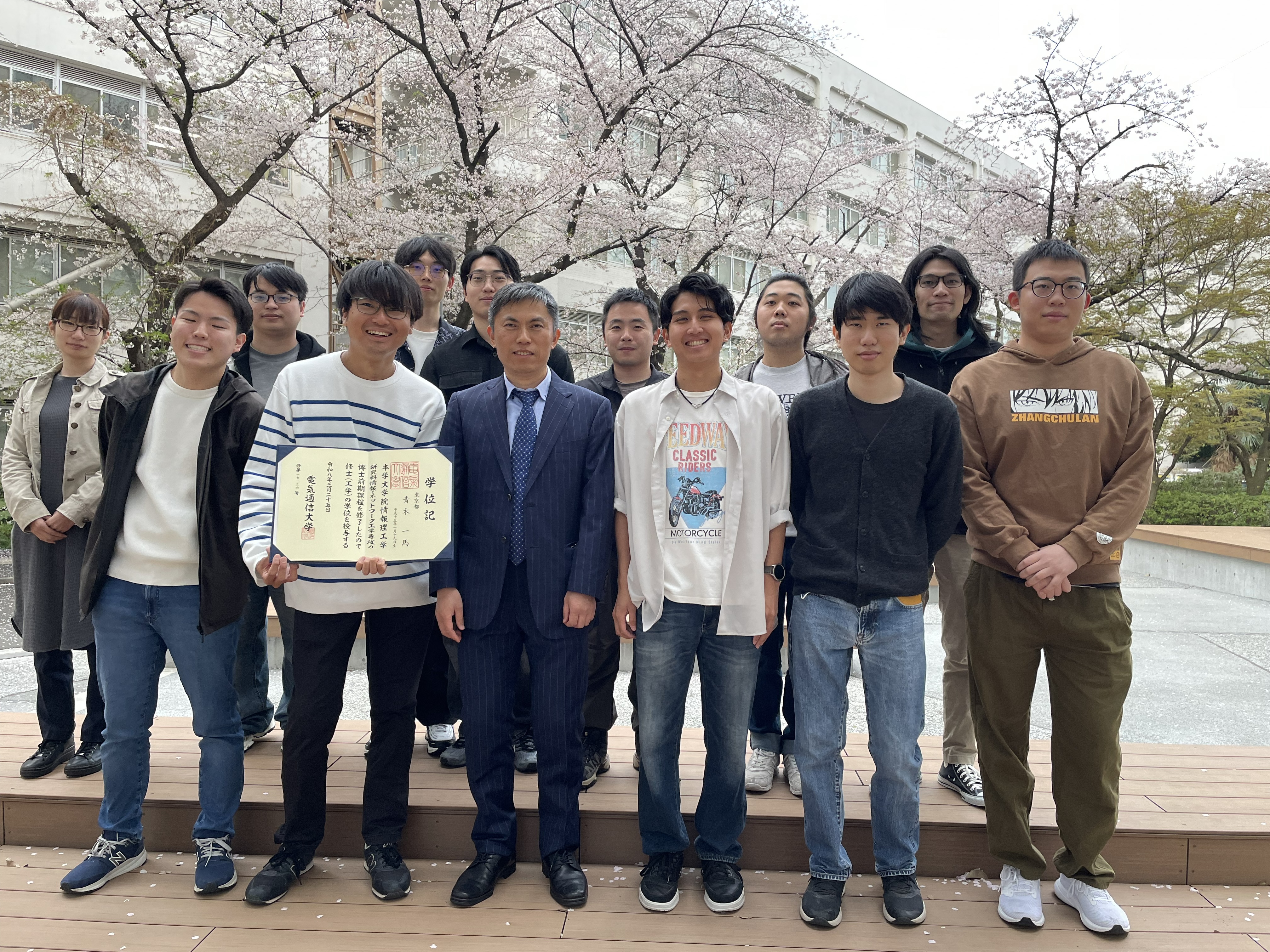 - 博士前期課程の徳永 大貴くん、山見 悠人くん、肖 唯巍くん、学部4年生の青木 一馬くん、青木 紫朗くん、宮本 隼くんは、卒業しました。 集合写真1、集合写真2 (2024.3.25)